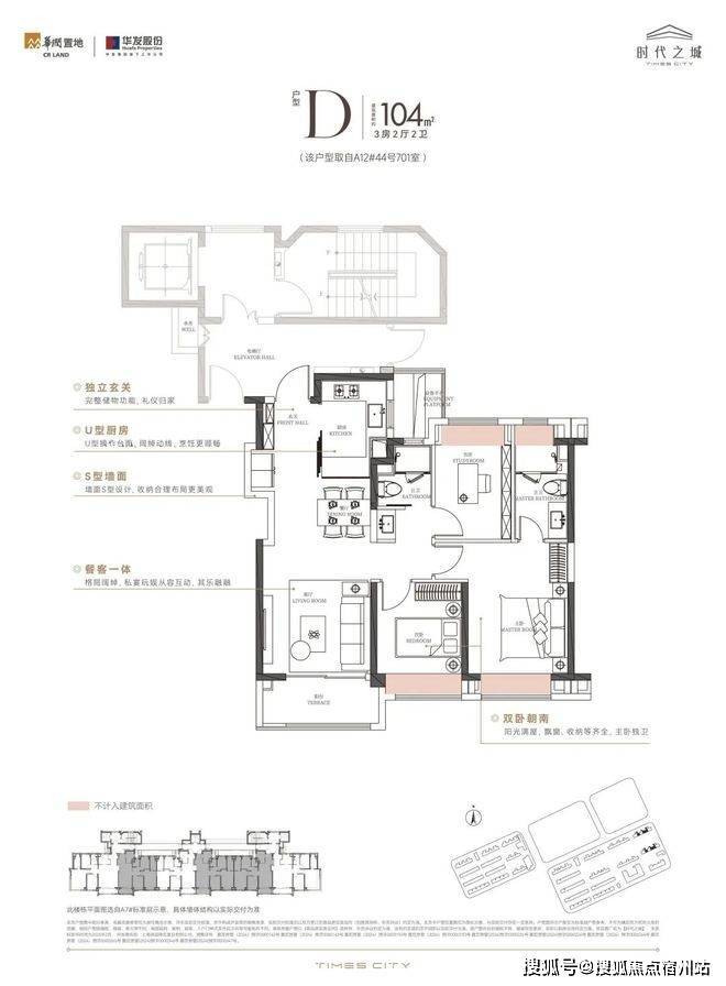 5、建面约104㎡3房户型,空间感与实用性兼备✅✅时代之城·雲墅售楼处电话:400 - 882 - 4258✅✅