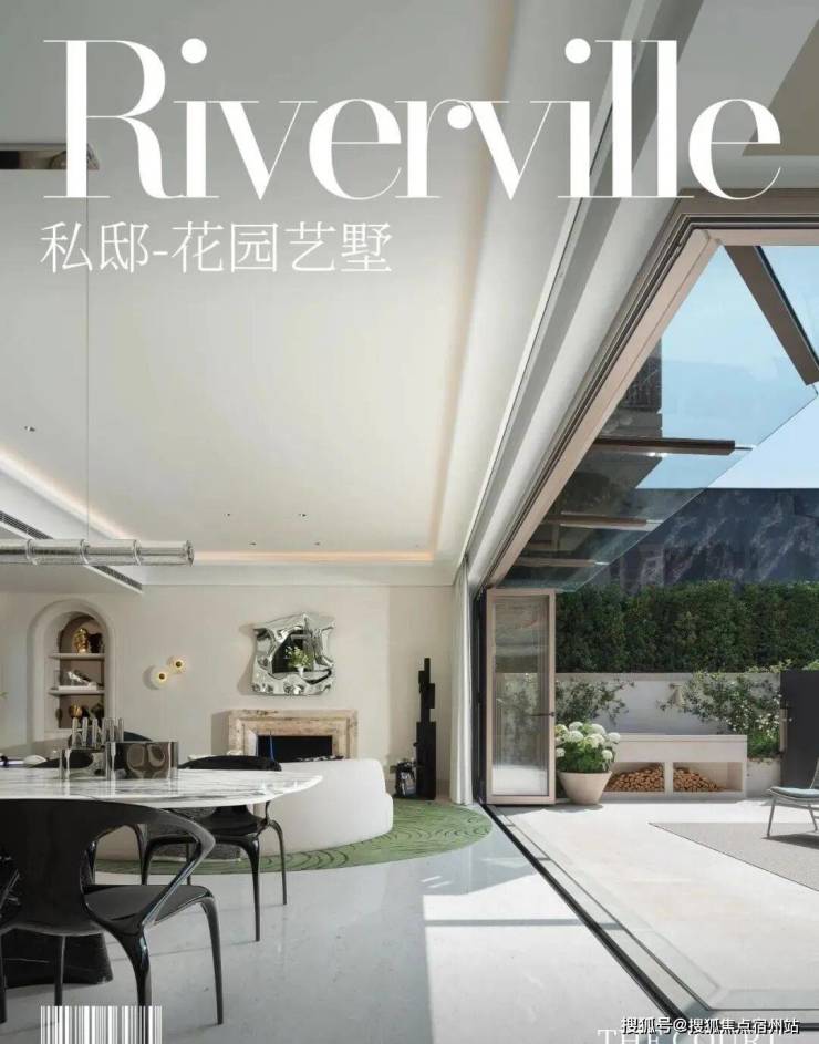 「无界空间」:客厅270度转角无柱设计,搭配落地玻璃,开阔视野将院中风景迎入日常。