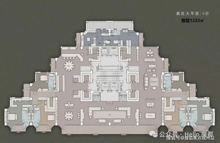 以2号楼为例 总高39层;实际住宅36层;1栋楼分2个单元 每个单元2梯2户;每两个楼层2个单元共6户大宅,370㎡平层(两个楼层2个单元共4套),680㎡复式(两个楼层2个单元共2套)另传最终交付时候可能会有户型定制