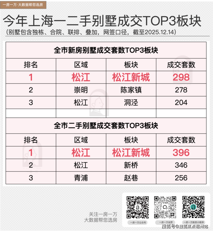 截至2025.12.14,松江新城 一二手别墅(独栋、合院、联排、叠加)成交量同样断层领先 ,碾压徐泾、赵巷、新桥等,登顶 全市TOP1 !