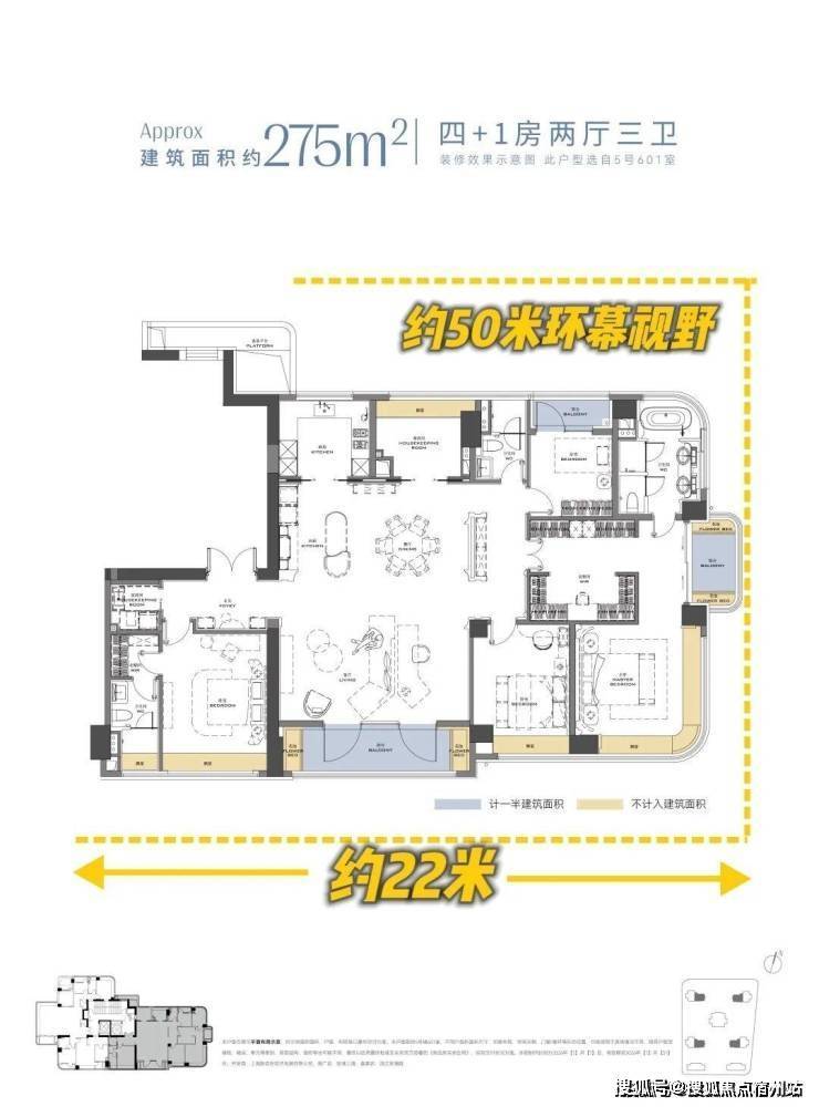 275㎡户型 全屋约50米环幕视野,南向约22米采光!