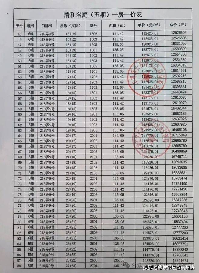 最新一房一价表公示 :