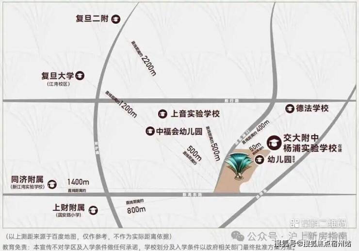 周边有中国福利会幼儿园、上海音乐学院实验学校、兰生复旦中学(国和路校区)、国和中学、市光中学、国和小学等基础教育设施,项目北侧紧邻在建的上海市交通大学附属中学杨浦实验学校(含九年一贯制及高中部)。 (期房不承诺学区,以后期主管部门划分为准)