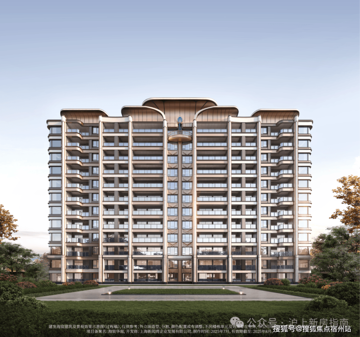 建发「宸系」中式作品,铝板与玻璃幕墙外立面,配园林景观。约1150套房源高低配,限高40米 ,含小高层、洋房、叠墅产品,满足刚需与改善需求。