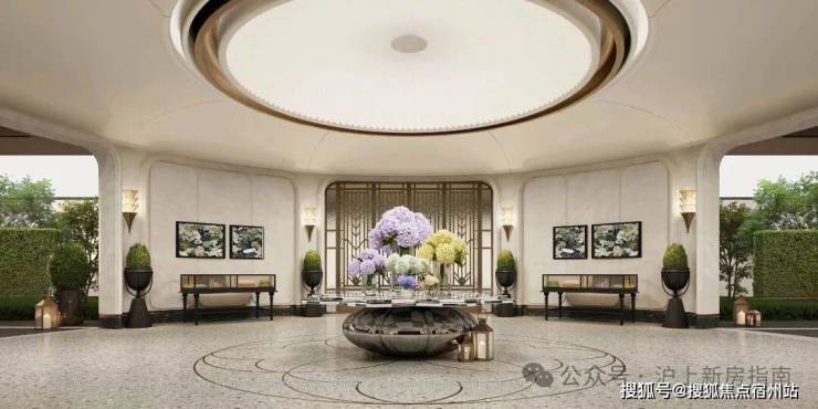穿过光影流转的迎归大堂,直达艺境超群的莳花荟中央会客厅:
