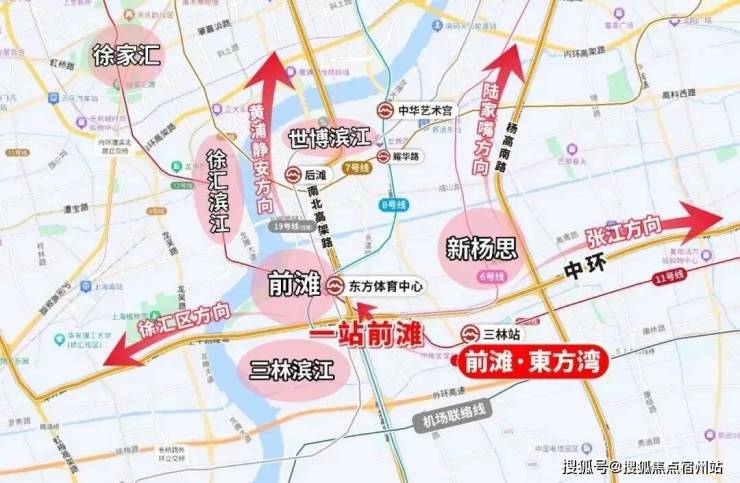 ②通勤升级:项目位置上更靠近中环和前滩,周边五轨环绕,与11号线三林站直线距离仅约200米,1站直达前滩;