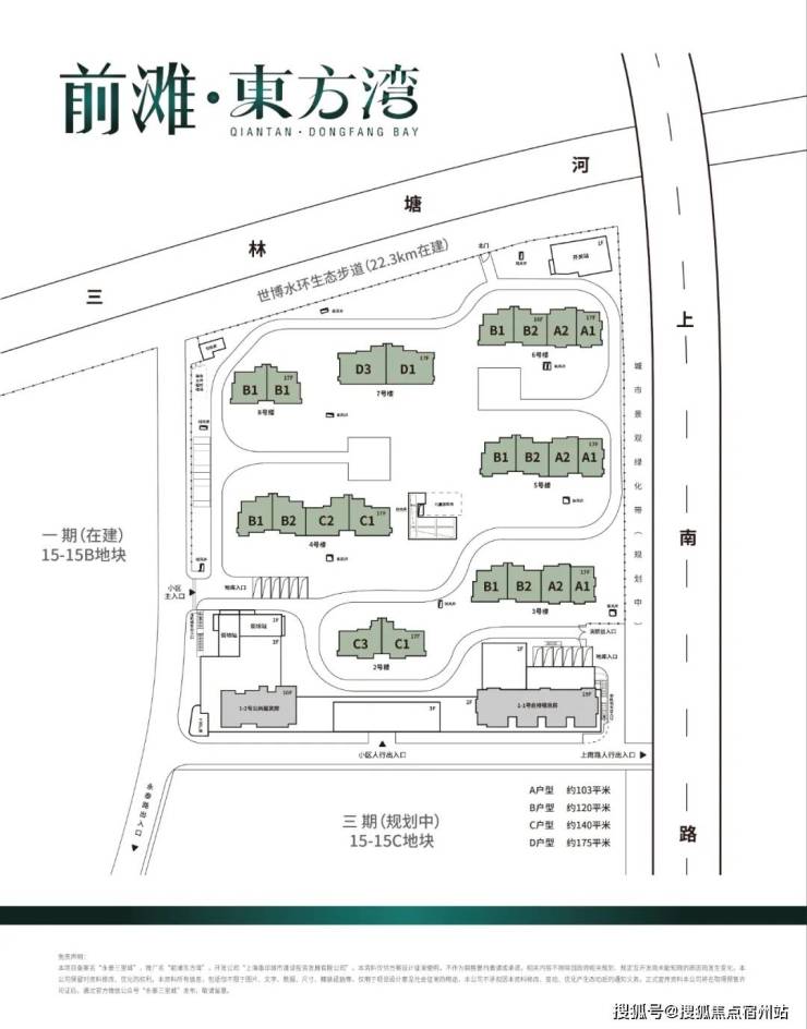 重磅消息,浦东三林前滩东方湾,将推建面约103-175㎡3-4房,浦东更值得期待的高端住宅:中环旁、一站前滩的前滩,11号线约200米,已经过会即将开始认筹。户型建筑层高3.1-3.15米,无连廊,双阳台配置。其中建面约103平户型2梯2户,其余一梯一户。