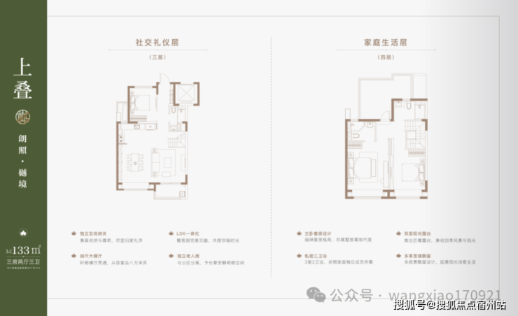 有更大尺度的改善需求,可以选择项目的叠墅产品, 主力产品建面约90-132㎡上叠,约113-132㎡中叠,约106-145㎡下叠。