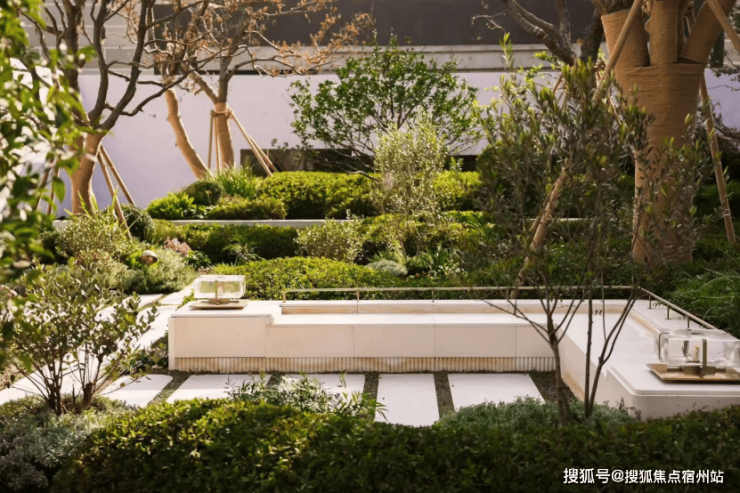 芳香疗愈花园:棋盘格布局的休憩空间以特选香樟为核心,搭配乌桕与多样芳香植物,从湘西深山移植的独特香橼,树形丰满,珍贵性不言而喻。