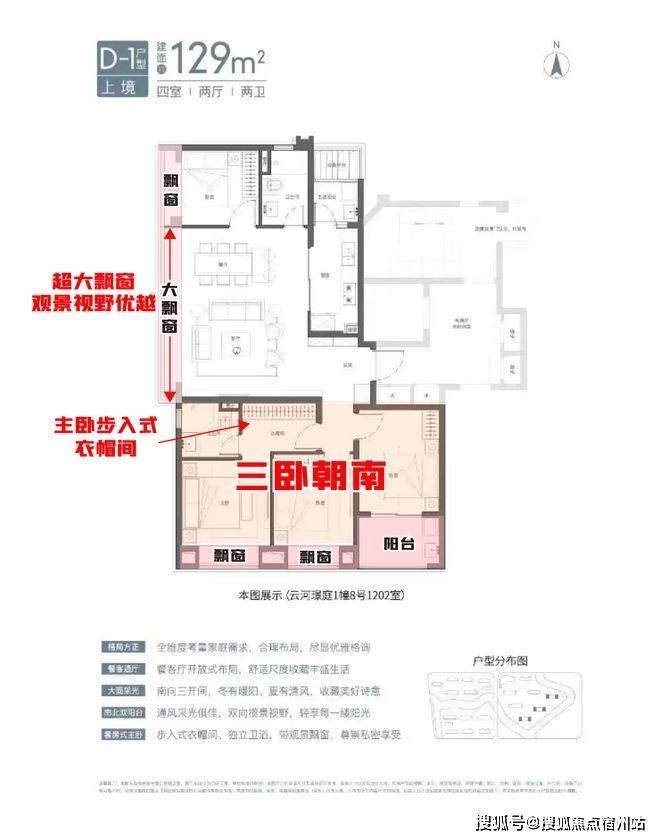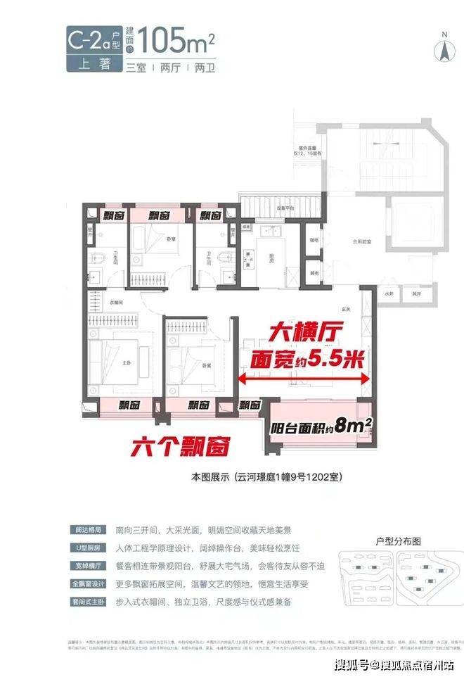 该户型相比传统三开间(只能南北观景)有一个很大优势:多一面采光面,能达到270°环幕采光和视野。