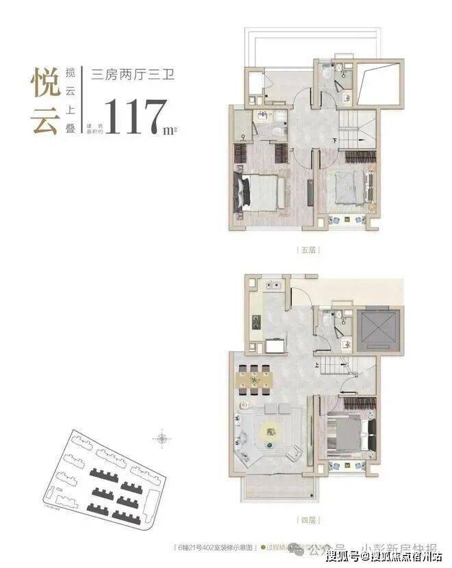 项目的上叠户型3房3卫的设计,每个家庭成员都能找到独属于自己的天地。