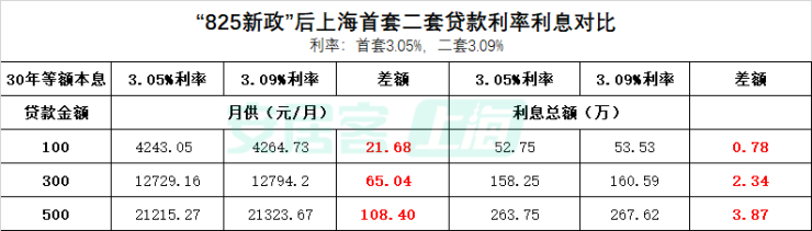这也意味着,对于上海二套房业主来说,如果申请房贷,最低利率有望达到3.09%,与首套房贷利率基本一致, 100万贷款月供差22元左右