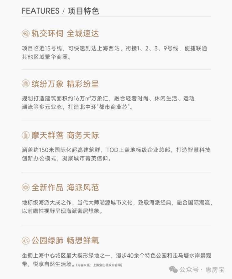 在住宅营造上,品质人居与缤纷商业、创新办公和谐共融共创,以社区生活与滨水绿廊为载体,以蓝绿湾区、公园都芯为理念,打造上海“复合型、生态性、识别性”俱佳的,具备号召力的海派国际生活范式。