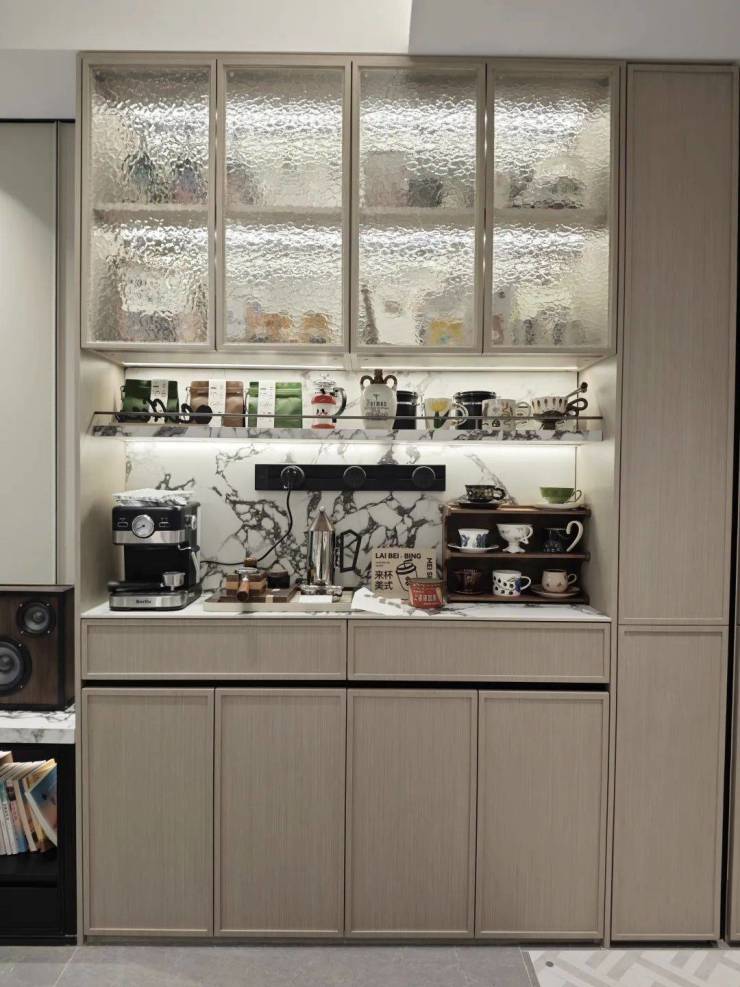 本次还增加了非常实用的零食柜和餐边柜,未来业主在这里可以作为自己的一个日咖夜酒区域。