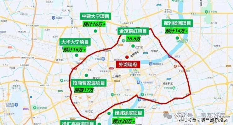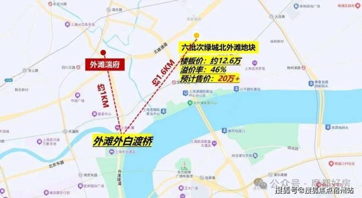 今年六批次土拍 ,绿城竞得北外滩新宅地,溢价率超过46%,未来售价预计突破 20万元,它的位置就在「外滩瑞府」东侧约1KM。