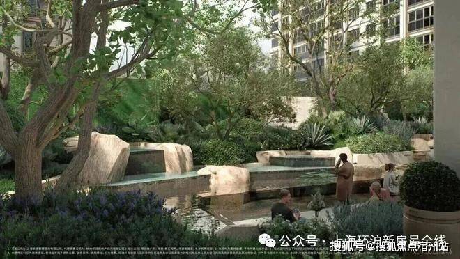 "一心两轴三花园" 的景观布局,绿植错落、水景灵动,步道蜿蜒其间,仿佛置身半岛艺奢藏馆。
