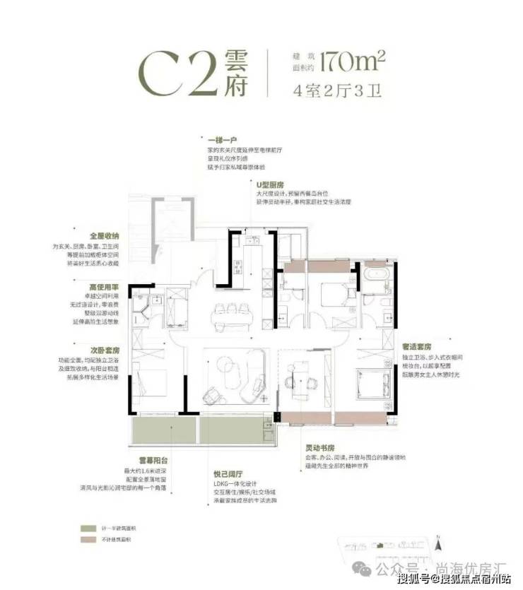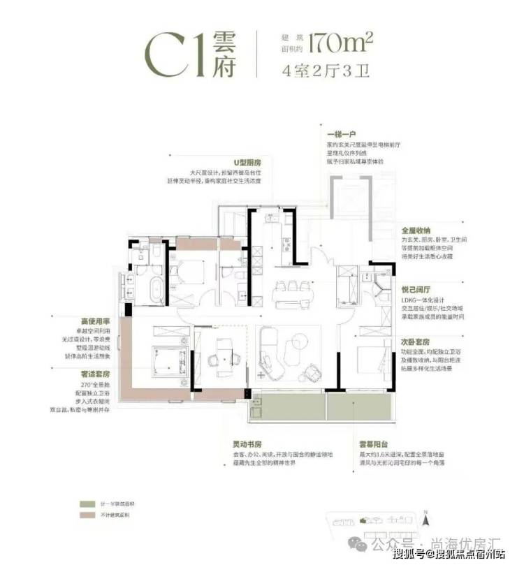 随后推出的 170㎡“悬浮全景舱”,直接引领上海高端户型革新—— 南向 15.8 米四面宽让每个空间都享阳光平权,深 U 型厨房预留西厨岛台,约8.35 米双阳台兼顾功能与情绪价值,双套房 + 270° 全景窗 + 三卫设计,更将 “新平权主义” 落到实处,让每位家庭成员都有私密空间;