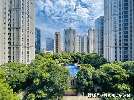 社区内打造东南亚风情园林,种植百余种名贵树种,喷泉、绿植错落有致,约 40% 高绿化率,推窗即见绿意。