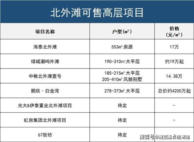 目前,核心区真正处于可售状态的新盘屈指可数,主要包括:中粮北外滩壹号、绿城潮鸣外滩、北外滩恒大地块、67街坊项目、虹房集团北外滩项目以及海泰北外滩、鹏欣·白金湾的少量剩余房源。