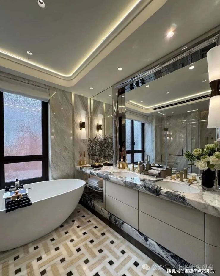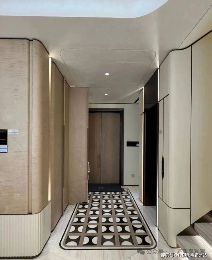 高定公区,重塑海派归家史诗;隐奢门庭:社区大门以古琦黑奢石手工锻造弧形幕墙,将珠宝镶嵌工艺融入建筑肌理;