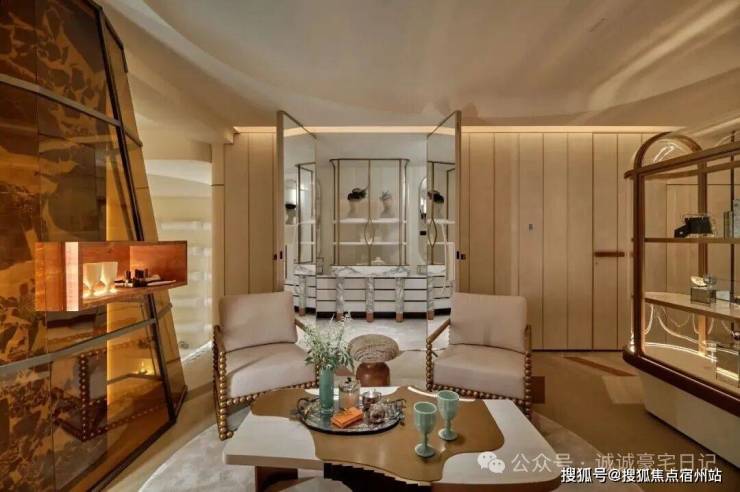 在这里,男女主人可尊享各自独立的沙龙空间,也分别配有珍宝阁和休闲区,可展示自身的爱好与收藏,可与好友相约小聚下午茶,也可享受独酌。这无疑是家中可唤醒感官的角落,让自身的品格与态度得以安放,让家空间与居者,相互滋养,相互成就。