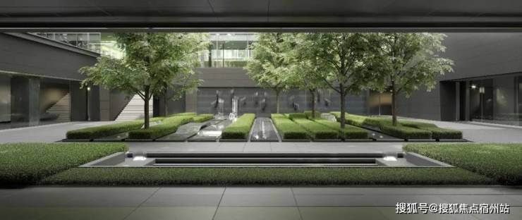 景观设计方面,保利世博天悦采用 引江入园、以水带路 的手法,将滨江舒阔的国际生活平移到社区内,打造约 6万㎡景观秘境 ,媲美全球奢华酒店。采用大面积的留白和现代禅意的表现手法,呈现开阔舒展的质感。