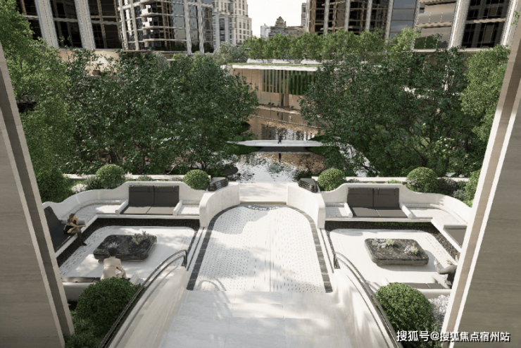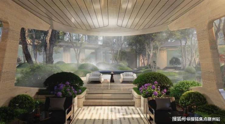 澐启滨江还打造了延展 超百米的庄园景观。设计灵感源自杰弗里·巴瓦的庄园哲学,建筑单体与绿化植被交错融合,形成一系列嵌入自然的观景单元。