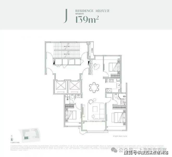建面约86m²3房2厅2卫: