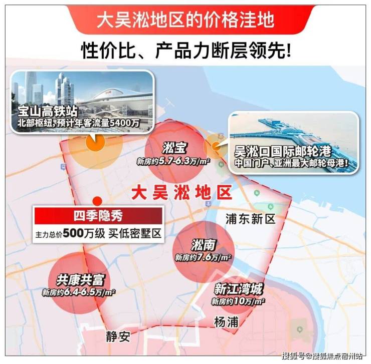 四季隐秀是大吴淞地区的价格洼地,总价500万级买入低密墅区,性价比遥遥领先。 ②北部枢纽+吴淞口国际邮轮母港,势能澎湃!
