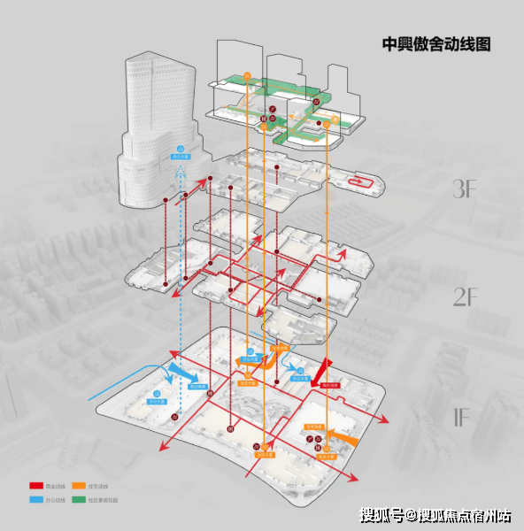 虽然商业和住宅垂直融合, 但住宅动线和商业动线是永不相交的“双轨制”模式。