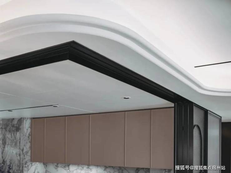 项目的天地墙也是细节满满:天花板设计 圆弧吊顶 , 工艺极高颜值自然不俗。客厅整块的背景墙充满质感,卫生间 通顶的大面墙砖 极抓眼球。客厅选用 90*180大板砖 恢弘大气,卧室采用 人字拼地板 ,温馨港湾!