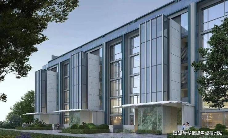 叠墅立面则采用 经典三段式设计,以传统经典演绎现代时尚,部分采用天青色釉面陶板,同样融合大面玻璃开窗(LOW-E玻璃),可更大程度的为业主带来宽绰视野,体验摩登生活。