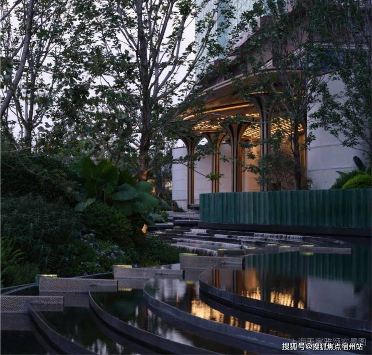 以匠心雕琢光影水韵之美,层叠水景与灯光延展出优雅的序列;以传奇的蒂芙尼蓝为灵感源泉,采用独创的U型玻璃熔铸工艺,将琉璃的梦幻光泽与水的灵动质感完美融合。