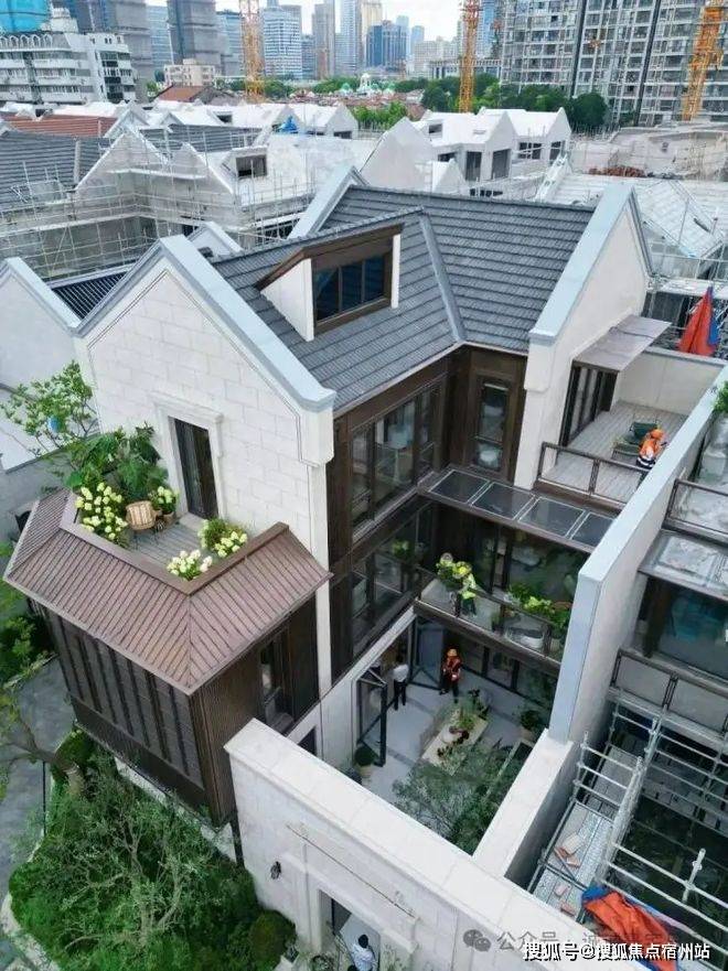 尽管项目规划为纯合院别墅,但210-500㎡的阔绰户型尺度,带来堪比甚至超越大平层的舒适体验,更兼具大平层难以企及的私密性与专属感。项目容积率仅1.33,绿化率高达35%,采用“新海派风格”设计,立面融合米白色真石漆、深灰色坡屋顶及红砖、青砖等传统材质,搭配进口花岗岩、三层中空Low-E玻璃与铜制线条,既保留历史韵味,又彰显现代质感。