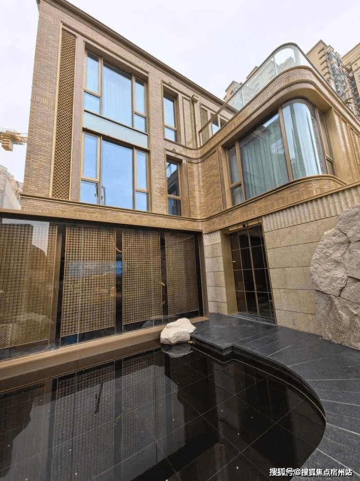外立面用宜兴手工釉面陶砖,187 种砖型、8 种拼法,历久弥新、质感高级,区别于普通豪宅的玻璃幕墙,兼具历史底蕴与现代审美