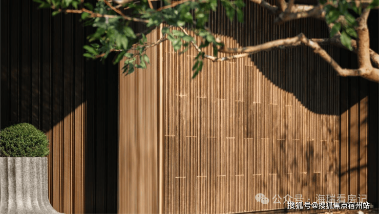 门庭隐现墨绿色泽的「璞熠琉璃」背景墙,经800℃高温淬炼,三十昼夜退火降温,无数遍打磨抛光,光影流转间熠熠生辉;特邀非遗传承人、福记世家第五代传承人夏志平,用十指抟砂古老手工艺独家定制的「璞釉艺陶」,搭配金属釉质感窑花纹理点缀,尽显温润高级。背后为呈现世间至美陶色,一片陶更历经了百次淬炼,配方调整,1280℃高温均匀铺釉。7.5m冠幅的百万级「百年冬青」,乃团队跨越6省17城,百次实地勘察,从近万棵名木中,万里挑一甄选而出,枝干苍劲充满力量;水盘池底的「流金银河」奢石,浓缩着来自宇宙的浪漫,以水刀行纹,让东方的银河让自上而下,层层倾泻。