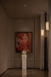 整个公区引入沉香米黄、透光云石、安哥拉黑、福鼎黑、橙皮红、宝格丽紫等近二十种全球奢石,宛如一座流动的奢石博物馆。