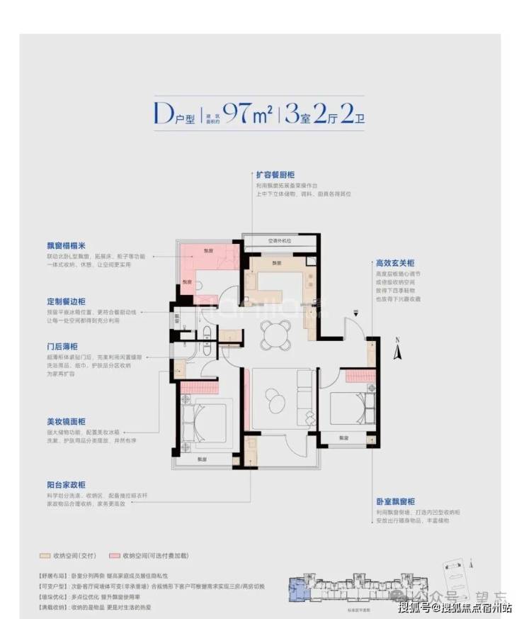 【建面97㎡3居】359-439万,3室2厅2卫, 南朝向,楼栋分布于1幢