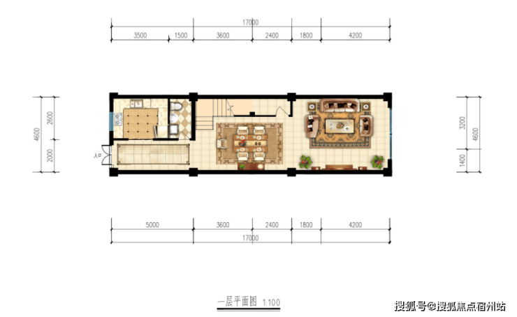 房屋进深:一楼17米、二楼17米、三楼12米