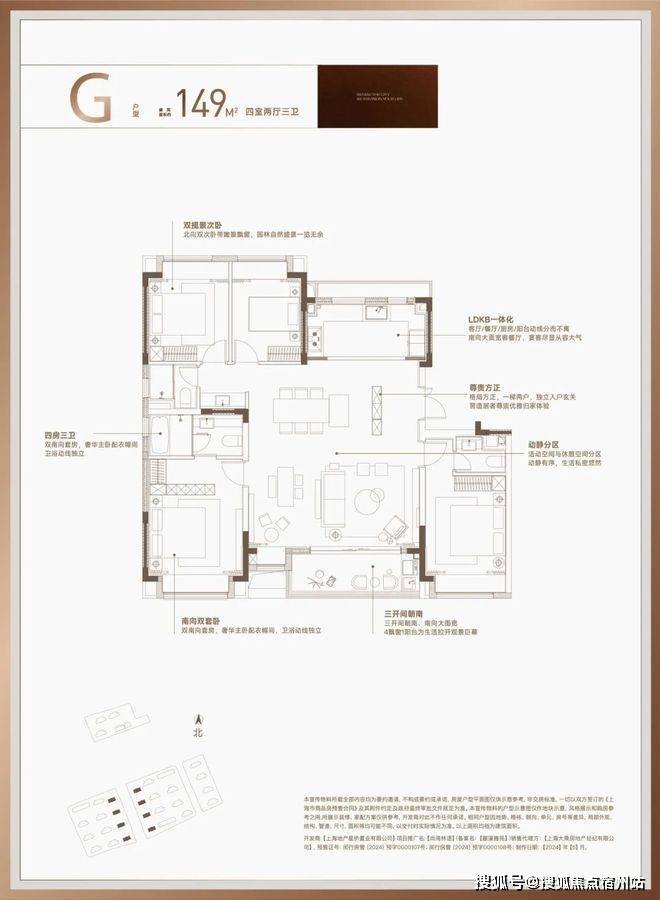 一梯两户设计,南北通透,三开间朝南,大尺度、大面宽,全屋飘窗,采光充足,南向阔绰双套房设计,配备奢华主卧及衣帽间,私密性更强。