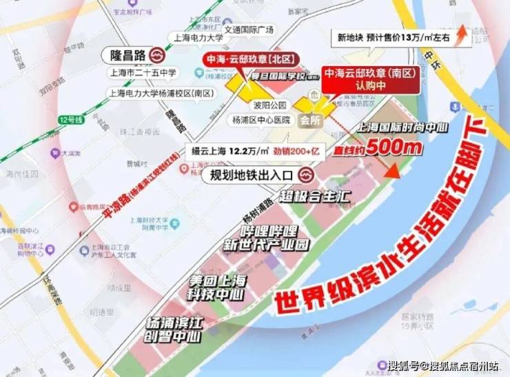 定位世界级科创中心,美团、B站、超级合生汇等地标综合体配套一街之隔,杨浦滨江核心商务区。