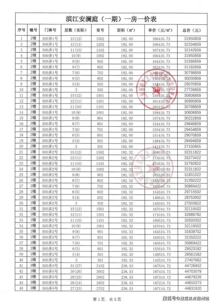 【安澜上海】一房一价表: