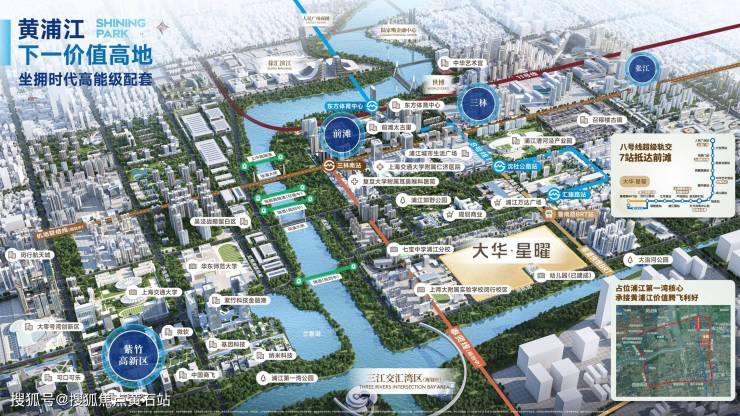 大华星耀楼盘区位黄浦江畔的闵行轨交盘毗邻万达,BRT+浦江线直通前滩