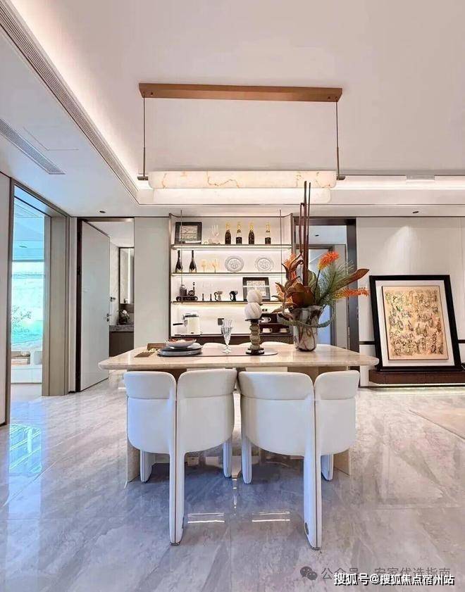 互动就餐区——多功能中岛餐台,同时靠近大尺度客餐厅,满足就餐及社交互动体验。