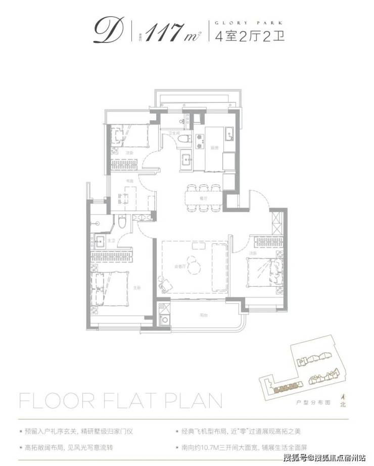 4房2卫 的设计,这个户型可以承载三代同堂的全生命周期需求,实用性拉满。也是四口之家,二孩家庭的最佳性价比选择。