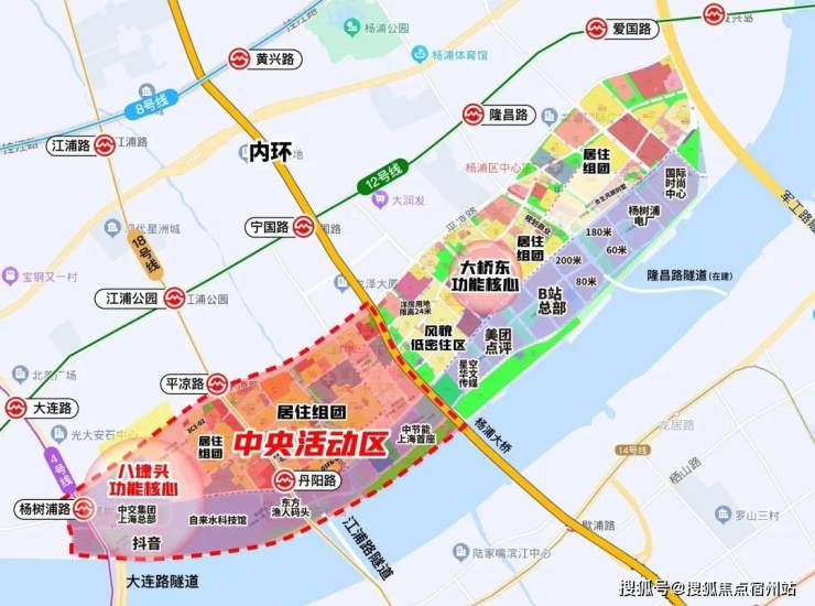 大桥东功能核心 汇聚了杨浦滨江更多的超高层建筑群,拥有 美团、哔哩哔哩、星空华文传媒总部、国际时尚中心、杨树浦电厂旧改项目 等地标产业&建筑。