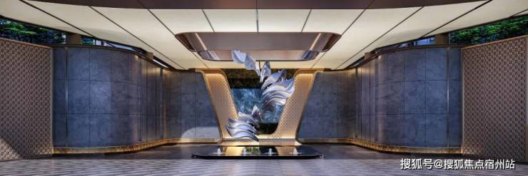 臻奢寰宇×艺术×超尺度,约95米城市超级界面·双重归家礼——蓝翡翠镜面奢石烘托,奢舞流转艺术雕塑。