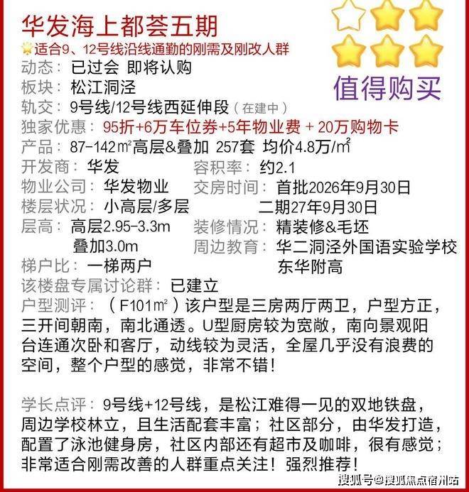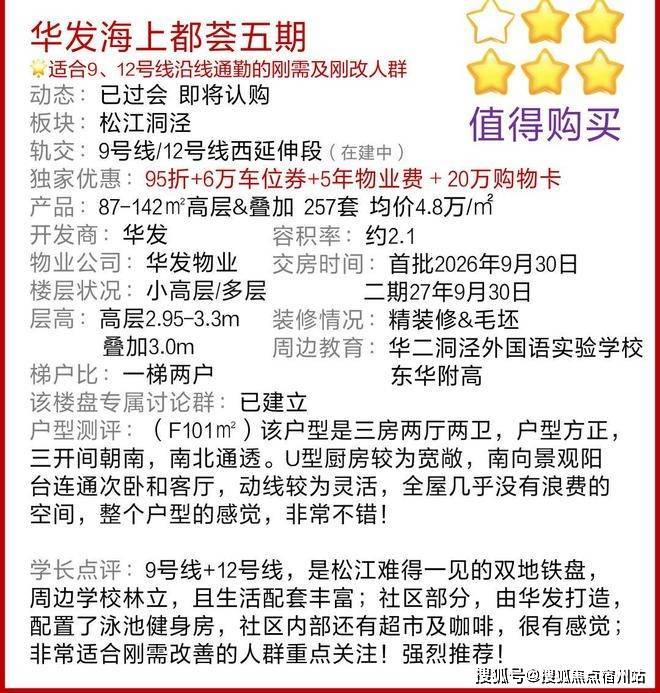论轨交,9/12双地铁口,直线距离均在500米以内;论价格,首开价格惊喜,仅4.91万/㎡就能上车墅质社区,低于联动价5万/㎡;论产品,华发优+体系5.0,约2000㎡邻里空间配套,自带泳池会所......诸多优点,同价位段里难觅对手。