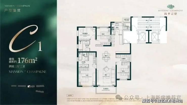 此户型最靠近苏州河,特地设计了 270度转角阳台 直面苏河一线景观!4个套房设计,尊崇感十足!此户型仅有6套,珍藏属性拉满!