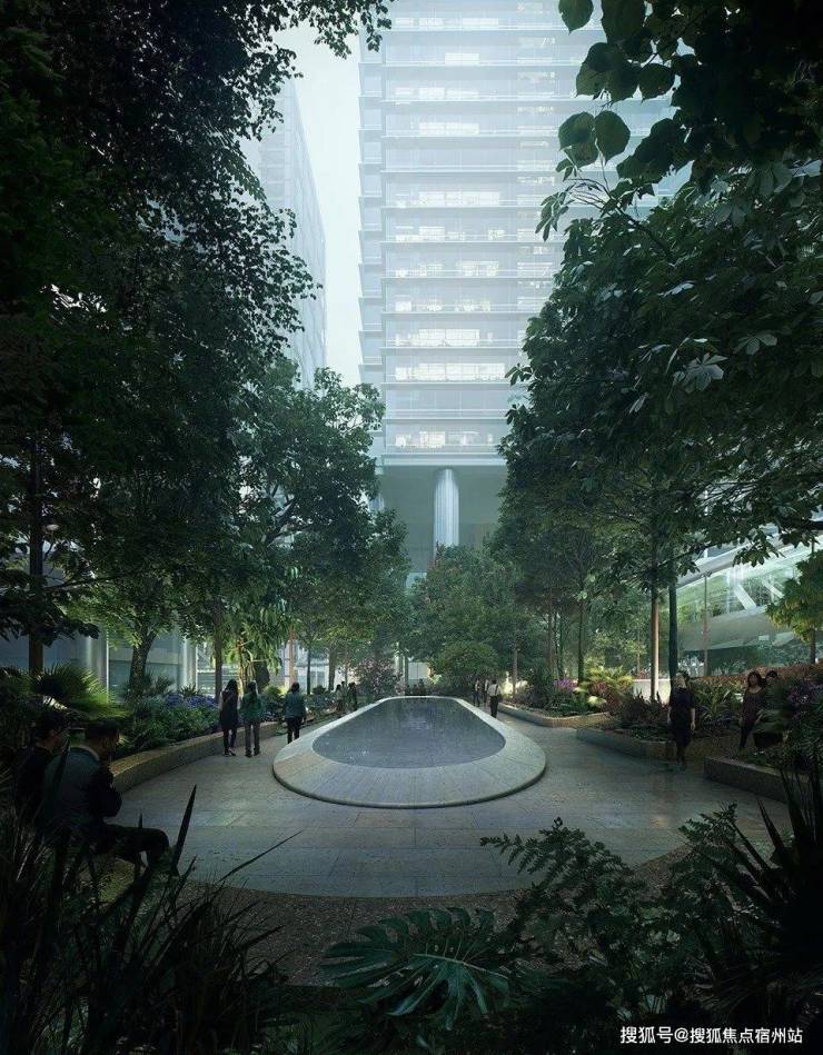 设计特别关注商业与住宅塔楼的交接面,通过景观缓冲区将公共领域和住宅的私属空间分隔开来,以求最大限度地保护居民的隐私,营造安静的居住环境,并削弱后勤和屋顶设备的视觉影响。